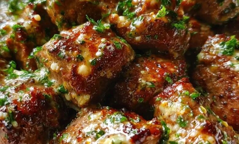 — Garlic Butter Steak Bites with Creamy Parmesan Sauce