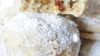 Ingredients 1 cup (2 sticks) unsalted butter, softened 1/2 cup powdered sugar (plus more for coating) 1 teaspoon vanilla extract 2 cups all-purpose flour 1 cup finely chopped nuts (walnuts, pecans, or almonds work best) A pinch of salt Instructions Preheat the oven to 350Β°F (175Β°C) and line baking sheets with parchment paper. Cream butter and sugar: In a large bowl, use a mixer to cream the softened butter and 1/2 cup powdered sugar until light and fluffy. Mix in the vanilla extract. Combine dry ingredients: Gradually add the flour and a pinch of salt to the butter mixture. Mix until just combined. Stir in the chopped nuts. Shape the dough: Roll the dough into 1-inch balls and place them on the prepared baking sheets, spacing them about an inch apart. Bake: Bake for 12β15 minutes, or until the bottoms are lightly golden. The cookies should not brown on top. Cool slightly: Let the cookies cool on the baking sheet for about 5 minutes, then transfer them to a wire rack to cool slightly. Coat with powdered sugar: While the cookies are still warm, roll them in powdered sugar. Once completely cooled, roll them in powdered sugar again for a snowy finish. Tips for Success Use fresh, high-quality nuts for the best flavor. Toasting the nuts lightly before chopping can enhance their flavor. Donβt overmix the dough once you add the flour to keep the cookies tender. These cookies store well in an airtight container for up to a week or can be frozen for longer storage.